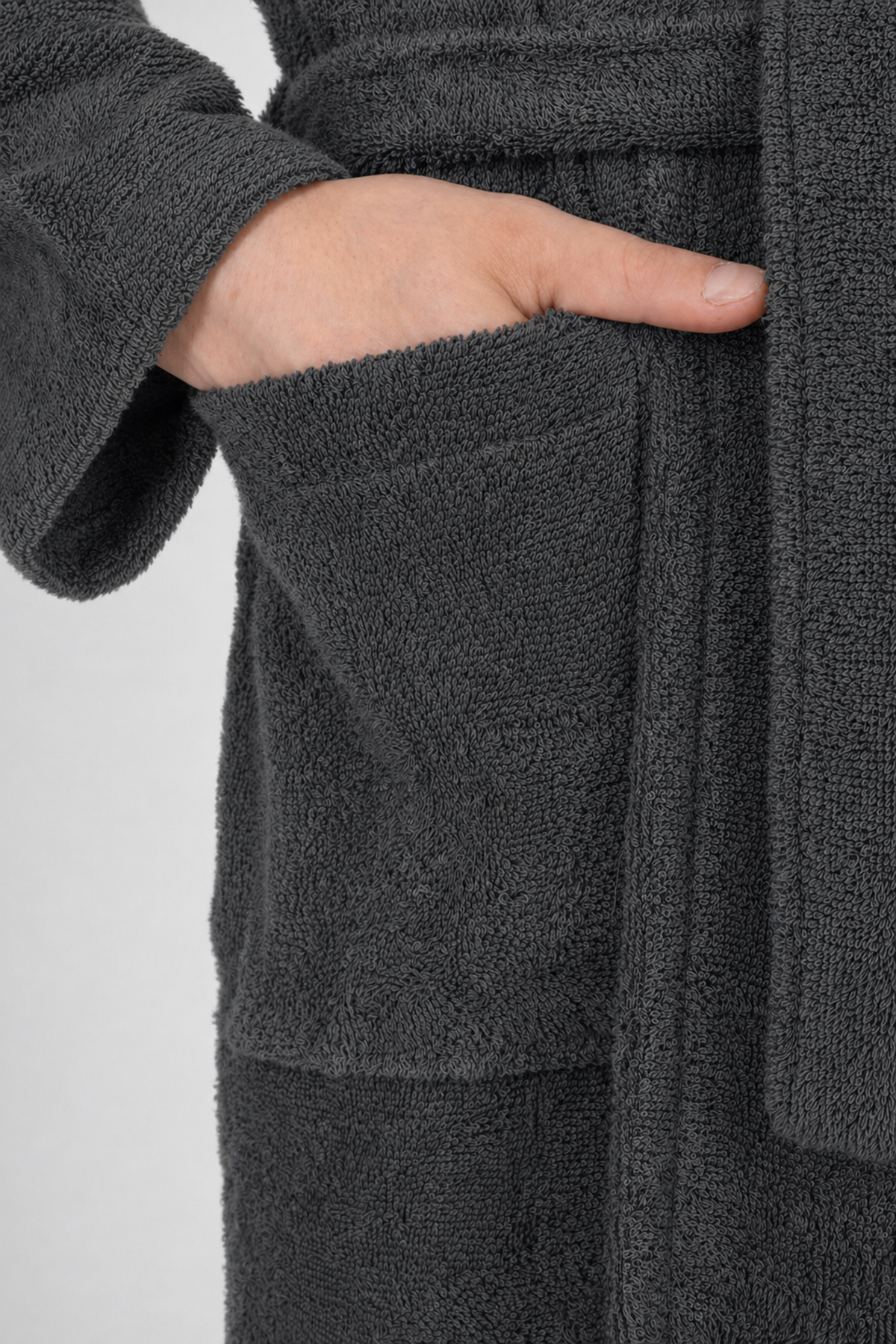 Izrađen od 100% pamuka, Pure ogrtač odlikuje se prirodnim sastavom, mekom teksturom i nježnim dodirom na koži. Istovremeno, gusto pamučno tkanje doprinosi njegovoj izdržljivosti, otpornosti i dugotrajnoj kvaliteti, što ga čini odličnim izborom za svakodnevnu upotrebu.