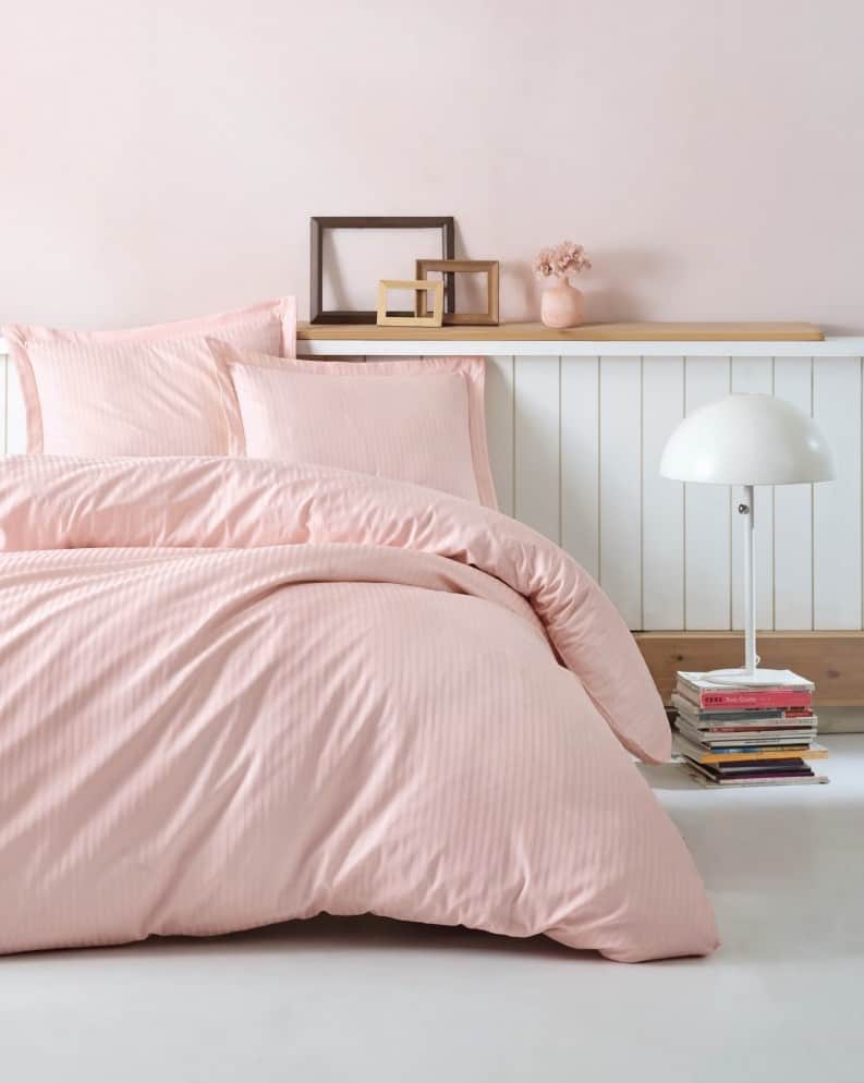 CB Saten Posteljina (Set) – Stripe Pudra