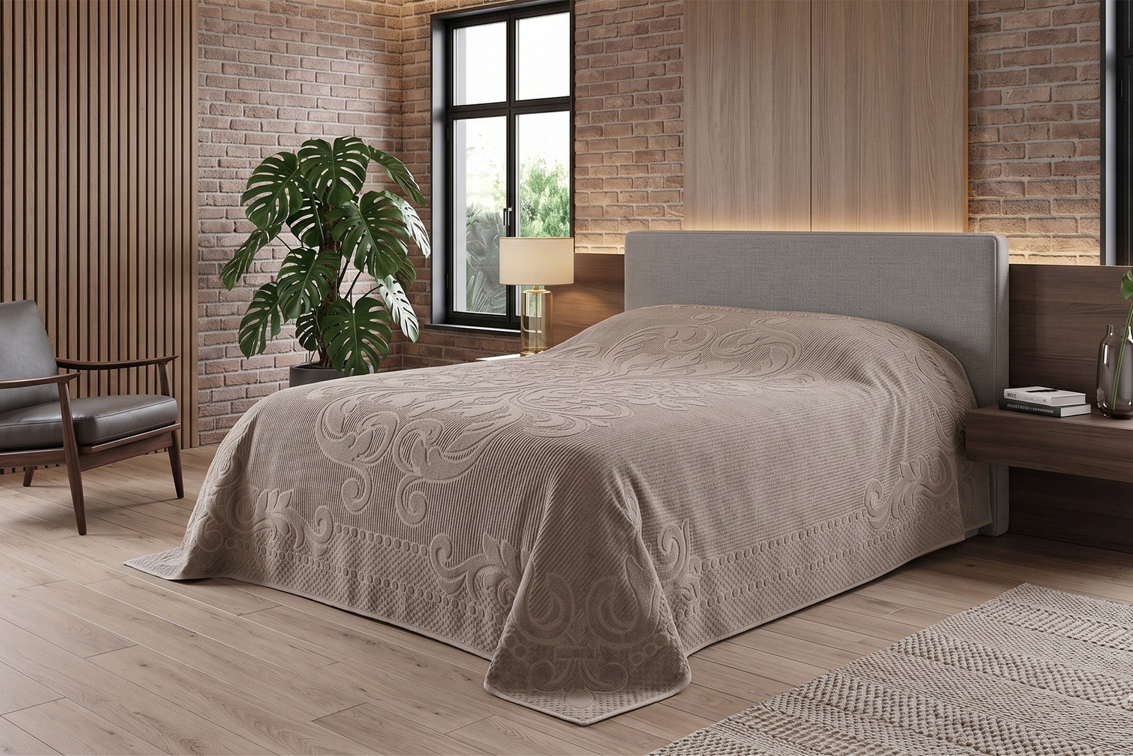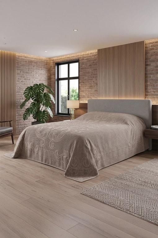 Ester frotirna deka u smeđoj boji savršen je izbor za one koji žele spoj udobnosti, funkcionalnosti i jednostavne elegancije u svojoj spavaćoj sobi.